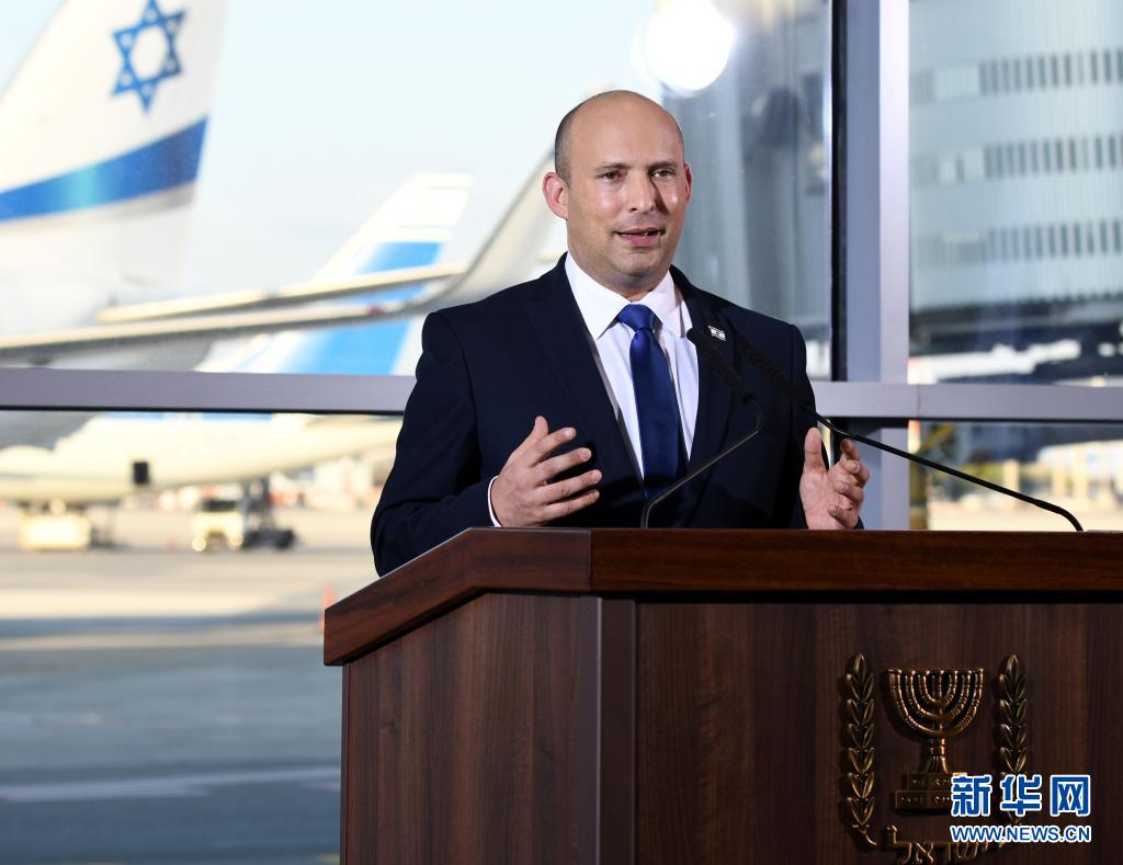 6月22日,以色列總理貝內(nèi)特在本古里安國際機(jī)場發(fā)表電視聲明。
