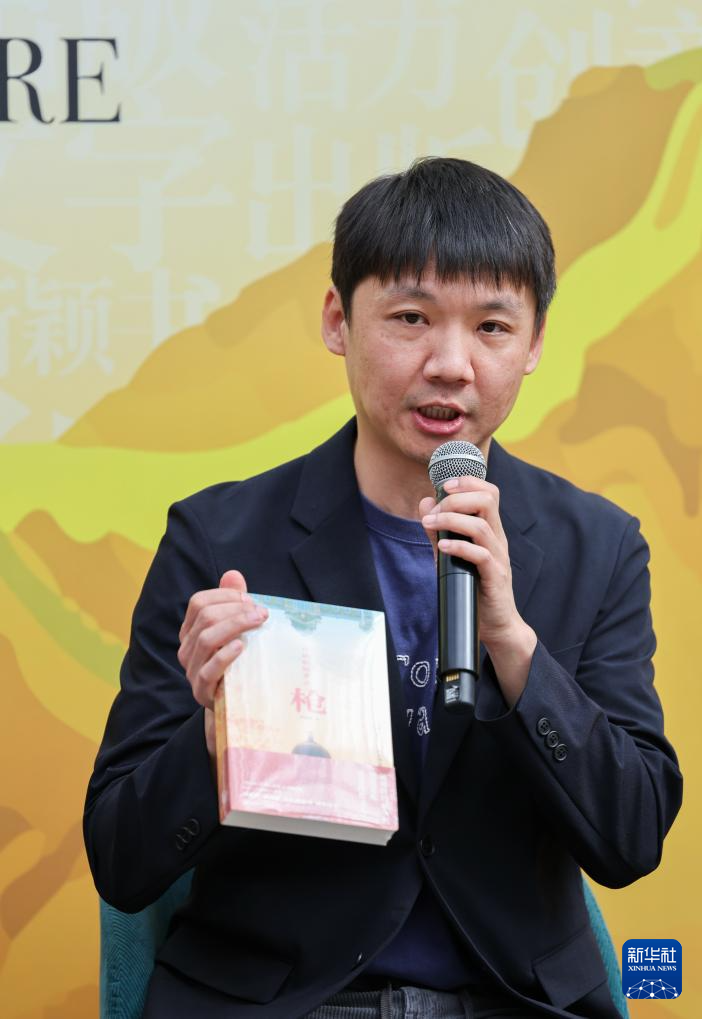 4月17日,在法国巴黎,作家陈楸帆在“巴黎图书节中国青年作家推广活动”上发言。新华社记者 邬惠我 摄