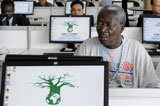 記者在聯(lián)合國氣候變化大會新聞中心處理稿件