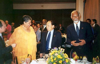 | | ????June 7. 1996 on a visit to the Republic of Kiribati, a country with a territory of 684 square kilometres and a population of 80,000 and also known as the Cross of the World because it happens to be the only country where both the equator and the international date line run through. |